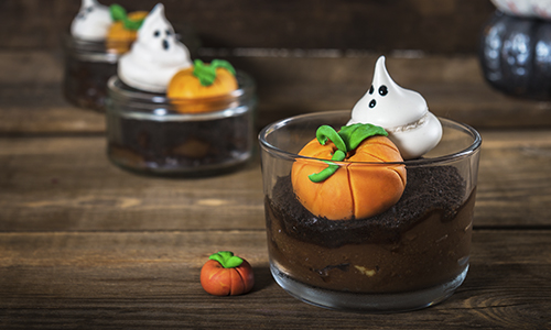 2. En cada uno de los vasos para molde coloca un poco de la mezcla anterior (cubre hasta la mitad). Aparta un poco de la preparación porque la utilizarás más adelante.